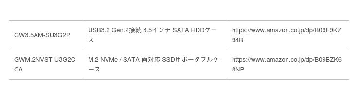 対応ドライブ:2.5型 および 3.5型のSATA接続のHDD、SSD