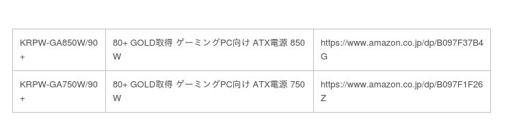 80PLUS GOLD取得 ATX電源 1000W(プラグインタイプ)