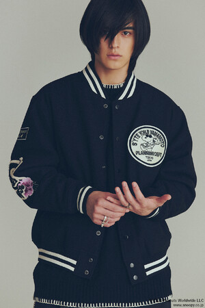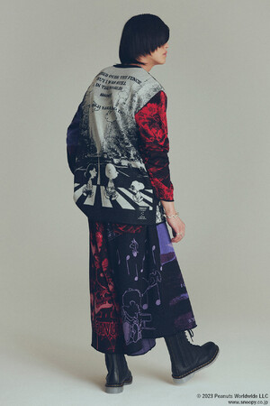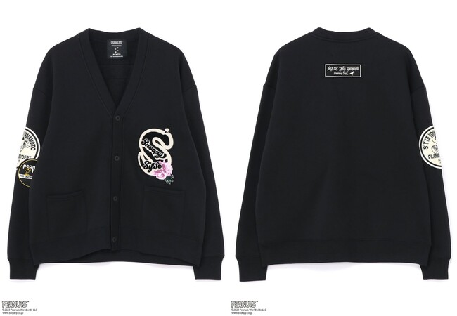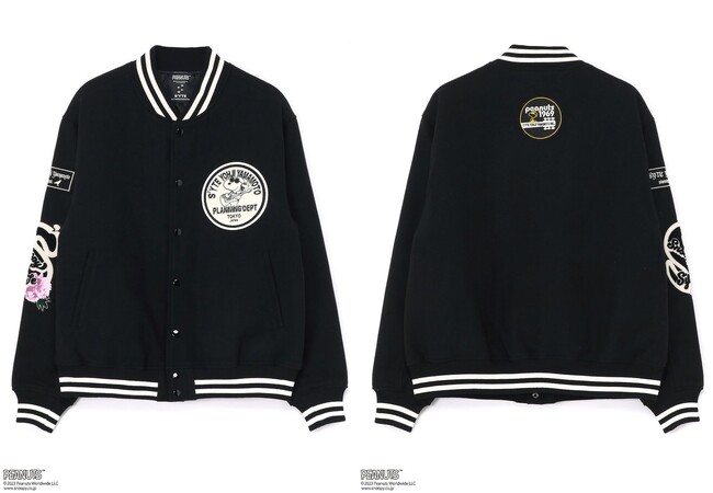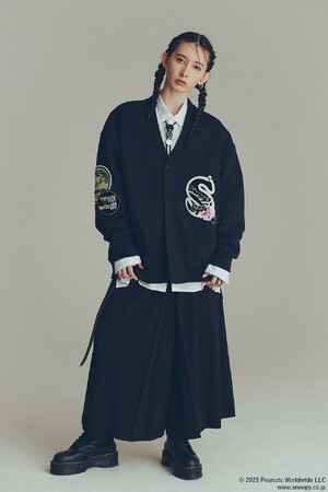 ウォームアップアウターとして使用されていたヴァーシティジャケットやレターカーディガンは、チームのロゴや学校名をワッペンや刺繍で表現していたアメリカのカレッジ文化が発祥。本アイテムでは「ピーナッツ」とのオリジナルロゴワッペンを各所に配置しました。アーム部分のロゴには、S’YTEの「S」をモチーフに牡丹の花を贅沢にサガラ刺繍で立体的に表現。スタジャンはメルトン生地、レターカーディガンは裏起毛素材を使用したアイテム。