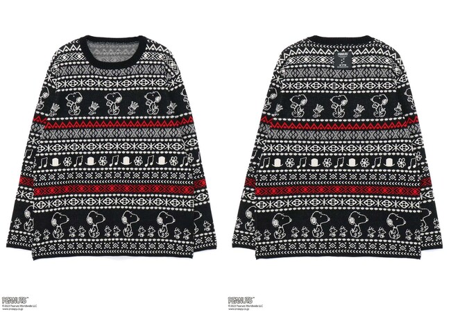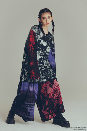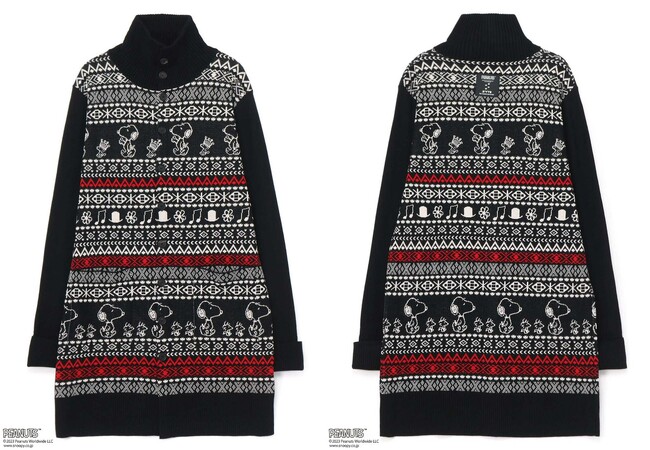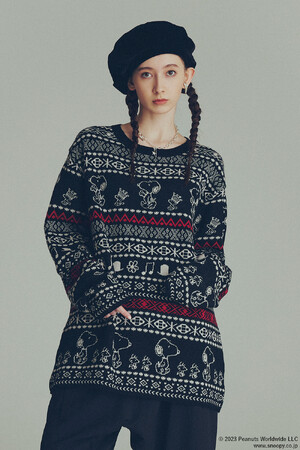 S’YTEオリジナルのノルディック柄のニットとカーディガンには、スヌーピーや王冠を被ったウッドストック、帽子や作中で登場する花、音符を描き入れることで、ノルディック柄と調和のとれたS’YTEのスタイルへとアップデート。