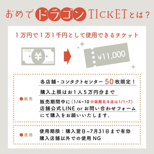 この機会にぜひお得な"おめでドラゴンチケット"をご購入くださいませ。