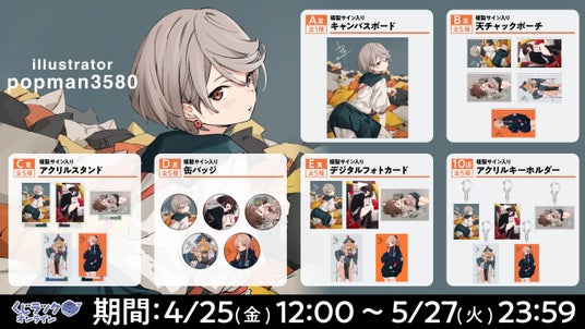 イラストレーター『popman3580』が「くじラックオンライン」に登場!新規描き下ろしなどの豪華オリジナルグッズがハズレなしでゲットできる!2025年4月25日(金)より発売開始!