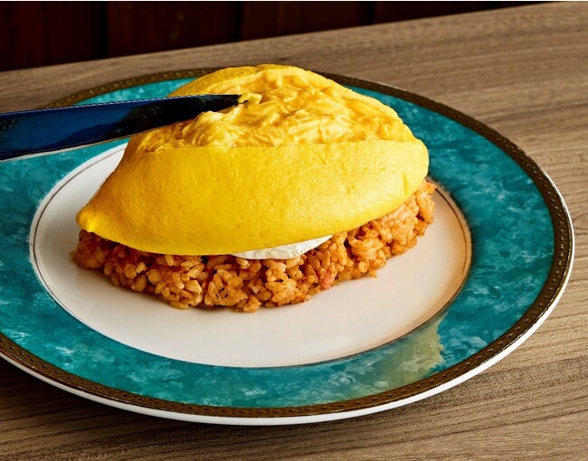 ナイフを入れた途端にオムレツが割れて完成するオムライス。カマンベールチーズをまるごと1個使用した贅沢な一品。