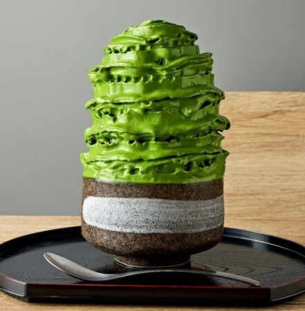 泡状にした抹茶をかき氷にまとわせた、職人技の一品。