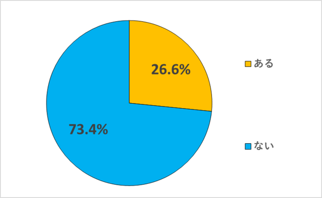 自然災害などによる被災経験をしたことがありますか?という質問では、「ある」と回答した方は26.6%、「ない」と回答した方は73.4%という結果になりました。約4人に1人が被災経験をしていることがわかりました。