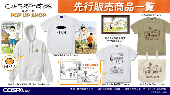公式キャラクターコスチュームやアパレル・グッズの企画、開発、製造を行う株式会社コスパは、〈「ひらやすみ」 真造圭伍作品 POP UP SHOP〉の開催を発表した。