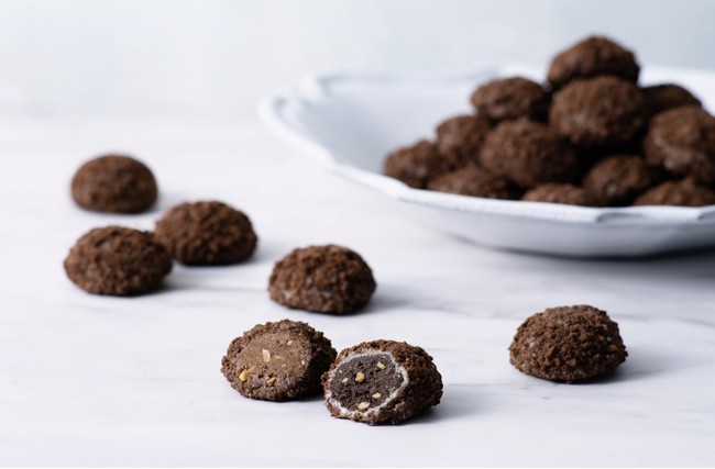 アーモンドプードル、クラッシュアーモンド入りのサクッとしたリッチなココアクッキーをなめらかなチョコレートで包み込み、仕上げにココアクランチを纏わせました。クッキーにしのばせたゲランドの塩がほんのりアクセントとなり、チョコレートの美味しさを引き立てます。ミルクとホワイトの2種を詰め合わせました。