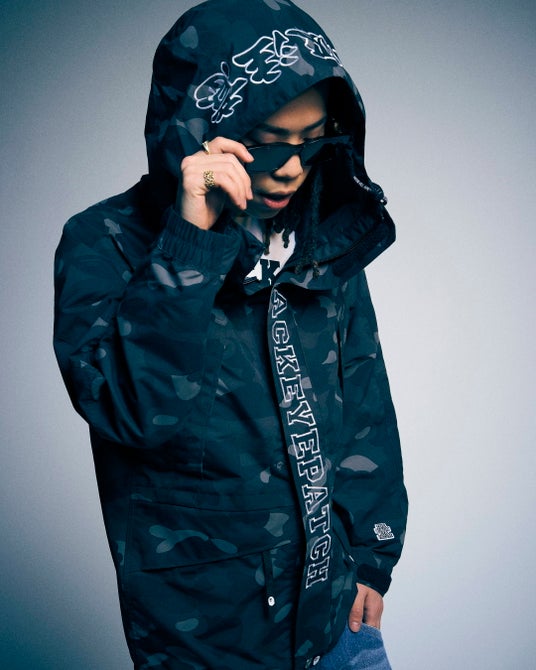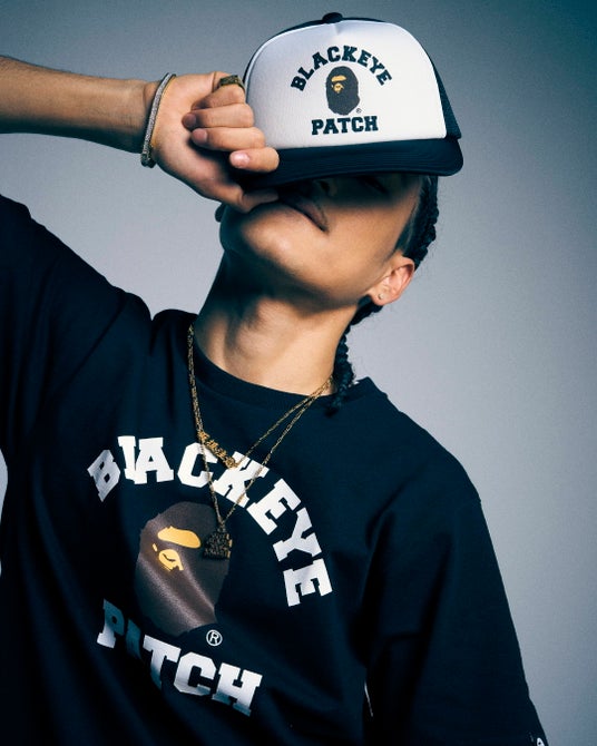 BAPE(R)の定番アイテムをベースに、BlackEyePatchの持つ“東京”というアイデンティティを表現したこのコレクションには、1990年代後半から2000年代前半のムードを落とし込んでいます。スノボジャケット、Tシャツ、デニムパンツ、ジップフーディ、クルーネックスウェット、スウェットパンツ、シャツ、トラッカーキャップ、ソックス、BABY MILO(R)のプラッシュドールがラインアップ。