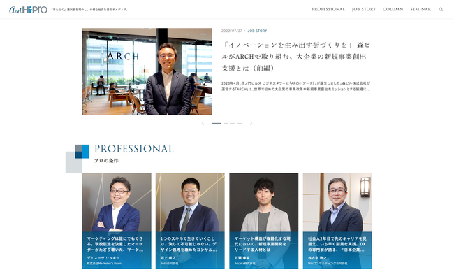 今後は、外部人材活用を通じて課題解決を行った企業などにインタビューした「JOB STORY / 仕事の数だけドラマがある」、プロ人材として活躍する個人にキャリア形成の考え方や副業・兼業先で自身のスキルを発揮できた理由をインタビューで紐解く「PROFESSIONAL/ プロの条件」、ビジネスを推進する上での課題やホットワードについてプロ人材が対談形式で語る「CROSS TALK / 今注目の業界人達が語り尽くす」といったコンテンツを予定しています。