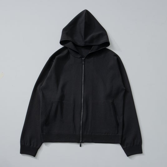 特徴:タフで高機能な特殊ニット糸を使用した、ウォッシャブルジップアップパーカー。絶妙な光沢とハリ感に加えて、驚きの伸縮性と柔らかな肌触りで、癖になる抜群の着心地を実現。