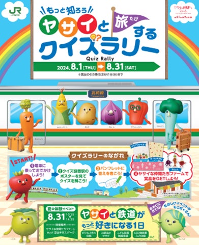 JR東日本高崎支社と深谷ベジタブルコミュニケーション株式会社は、8月1日(木)から8月31日(土)まで「もっと知ろう!ヤサイと旅するクイズラリー」を開催中。野菜の日の8月31日(土)には「ヤサイと鉄道がもっと好きになる1日」体験イベントを深谷テラス ヤサイな仲間たちファームで開催します。缶バッジ作成やマジックハンド体験、ピクルス作りなど、家族で楽しめるアクティビティが盛りだくさん。この夏休み、高崎線と新幹線に乗って、ヤサイと鉄道の魅力を体験してみませんか。