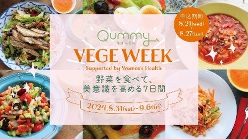 キユーピーの公式食品ECサイト「Qummy(キユーミー)」では、8月31日の「野菜の日」からオンラインイベント「Qummy VEGE WEEK~野菜を食べて、美意識を高める7日間~」がスタート。このイベントでは、7食分の食材セットをご自宅にお届けし、オンラインレッスンやLINEチャットで健康的な食生活をサポートします。野菜ソムリエATSUSHIさん監修のレシピで、美意識を高めるヘルシーな1週間を応援します。参加申込は8月21日(水)~27日(火)の期間中に、対象セットをご購入ください。ご参加お待ちしております。
