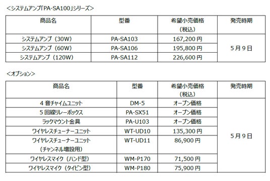 また、オプションとして、チャイムユニットやワイヤレスチューナー、ワイヤレスマイクなど計7モデルを同時発売。用途に応じてシステムアンプ本体と組み合わせることにより、システムアップが可能です。
