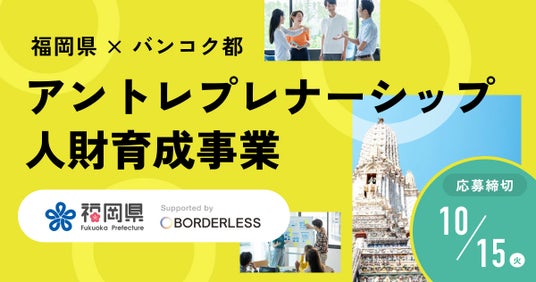 株式会社ボーダレス・ジャパン(本社:福岡県福岡市、代表取締役社長:田口 一成、以下:当社)は、福岡県より「福岡県・バンコク都アントレプレナーシップ人財育成事業」を受託し、福岡県・バンコク都のスタートアップに関心のある学生や社会人を対象とした約4か月の相互派遣プログラムを実施することをお知らせいたします。