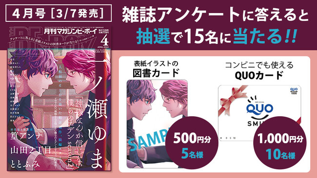 一ノ瀬ゆま先生の表紙イラスト図書カードが当たる愛読者プレゼント