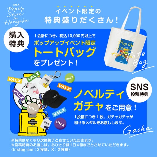 1投稿につき、VALXオリジナルグッズやノベルティがもらえるガチャガチャ引換券をプレゼント【※1】
