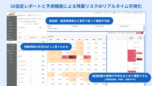 1.36協定レポートと予測機能による残業リスクのリアルタイム可視化