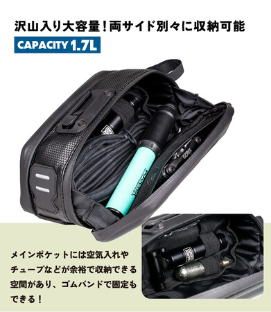 ・大容量の1.7L(空気入れやチューブなど必需品が入る)