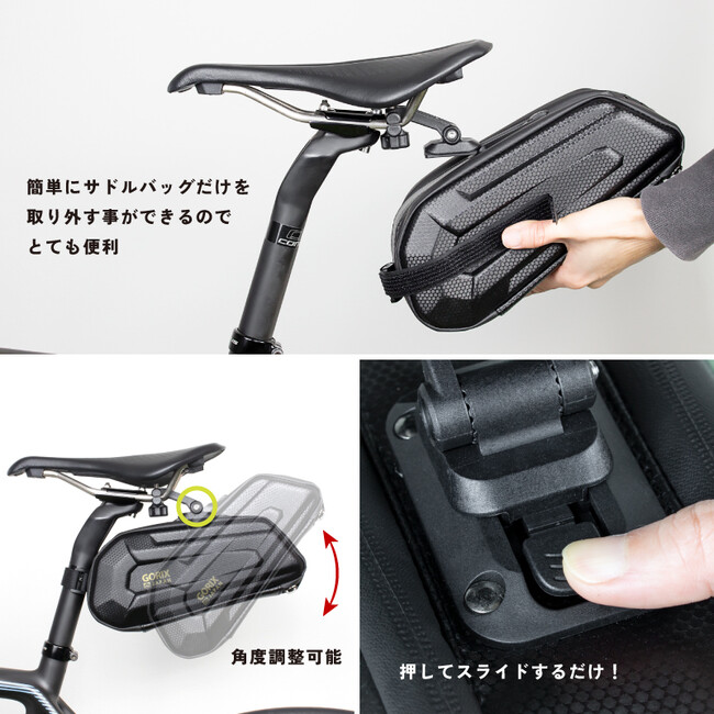 クイックタイプで、簡単にサドルバッグを外す事ができるのも特徴です。