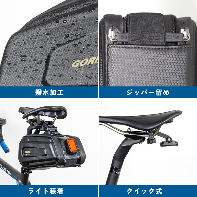 ロードバイクやクロスバイク、MTBなど様々な自転車のサドルレールに取付するサドルバッグです。