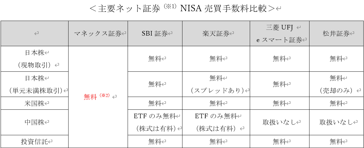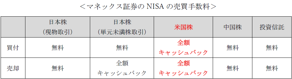 マネックス証券のNISAでは、米国株含むすべてのお取引の売買手数料(取引手数料)が無料です。