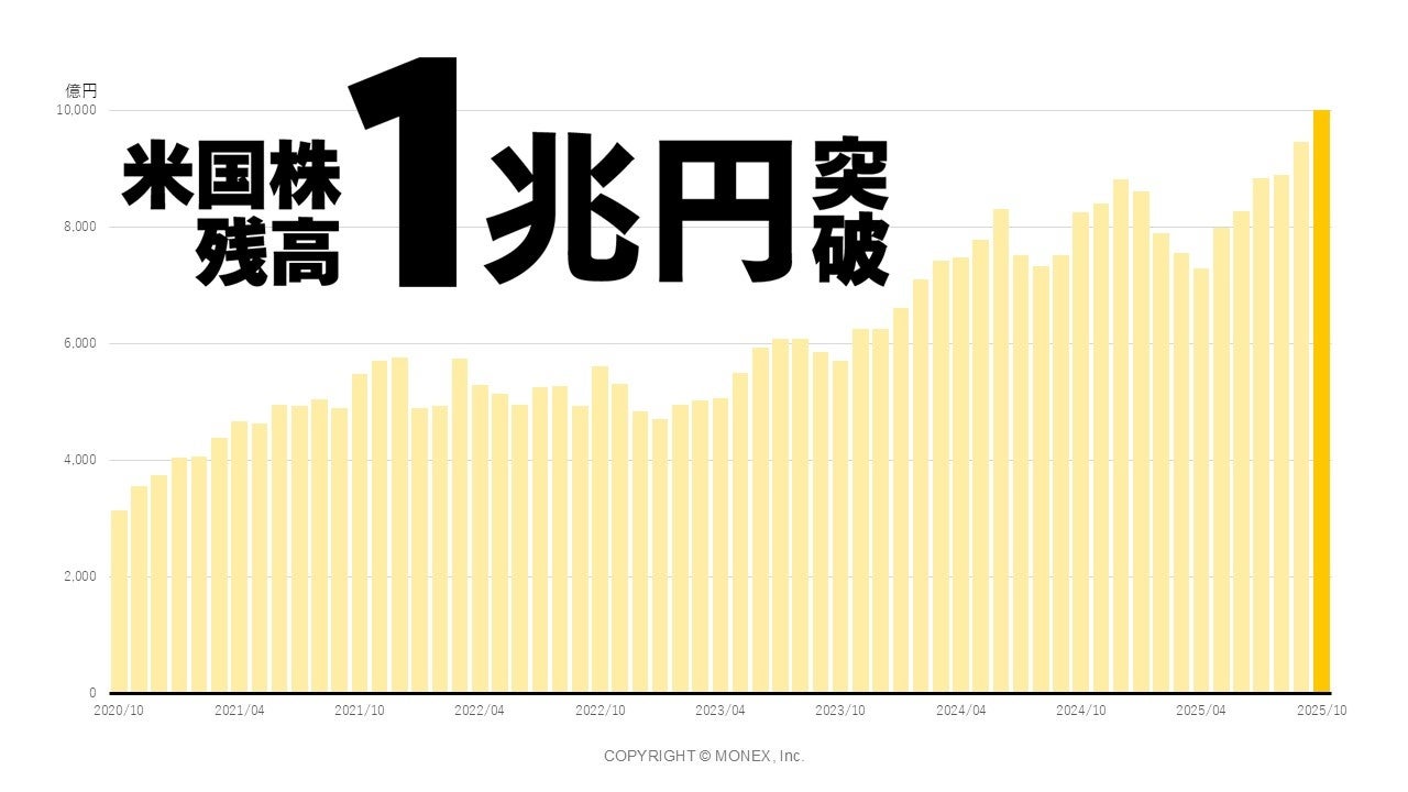 これらの取組みをお客様からご支持いただいた結果、2025年9月にお知らせした預り資産残高の10兆円突破に続き、2025年10月28日(火)に米国株残高(ETF等を含む)が1兆円を突破いたしました。