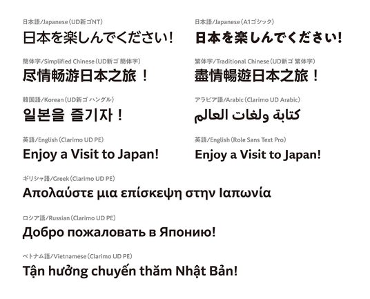 アプリのUIに採用されたフォントは、温もりのあるデザインが人気のA1ゴシックのほか、欧文スーパーファミリーのRole Sans Text Pro、日本語表記に使用するUD新ゴNT、UD新ゴ ハングル、UD新ゴ 簡体字に加え、151言語をカバーするClarimo UD PEとアラビア文字のClarimo UD Arabicです。Clarimo UDシリーズは、可読性を重視したシンプルで汎用性の高いサンセリフ書体で、「UD新ゴ」シリーズとも親和性のあるデザインのフォントです。