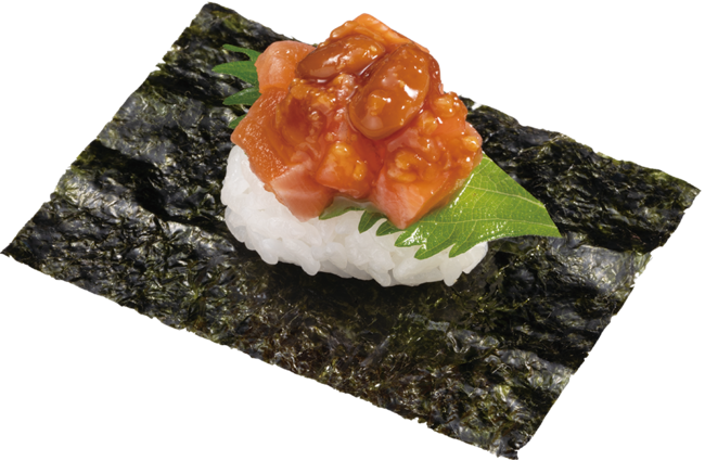 『信州サーモンしょうゆ豆なめろう風包み』一貫 165円(税込)