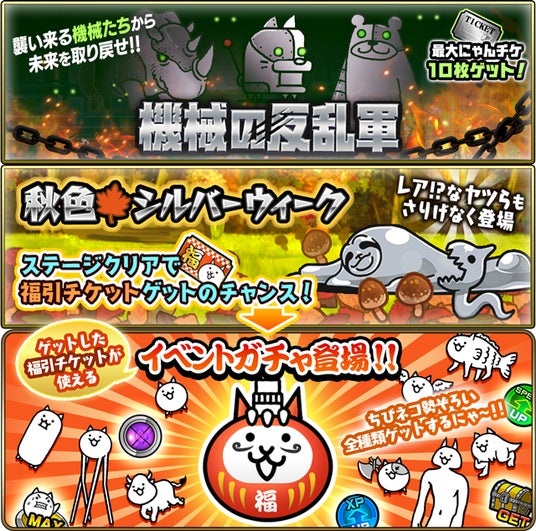 ポノス株式会社(本社:京都府京都市、代表取締役:辻子依旦、以下「ポノス」)が提供するスマートフォン向けゲームアプリ「にゃんこ大戦争」にて、2024年9月16日(月)11:00より期間限定イベント「シルバーウィークイベント」と、期間限定レアガチャ「メタルバスターズ」を開催いたしますので、これをお知らせいたします。