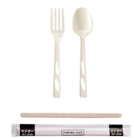 <フォーク:一部店舗で生分解性プラスチック製フォークを取り扱い>