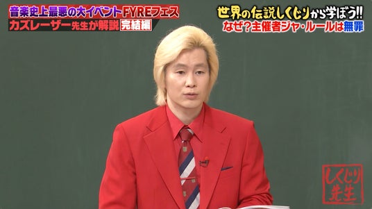 10月4日(金)の配信回では、お笑いコンビ・メイプル超合金のカズレーザーさんによる授業「史上最悪 地獄の夏フェス“ファイア・フェスティバル”」後編をお送りしました。
