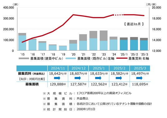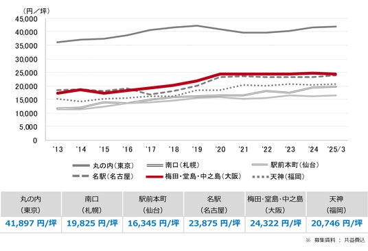 三幸エステート株式会社(本社:東京都中央区、取締役社長:武井重夫)は、2025年3月度の大阪市オフィス賃貸状況(空室率&現空面積:大規模、募集賃料&募集面積:大規模、規模別空室率、主要3区※1空室率:大規模)および全国6大都市(東京・札幌・仙台・名古屋・大阪・福岡)の大規模ビルのマーケットデータをまとめた「オフィスマーケット2025年4月号大阪」を公表します。