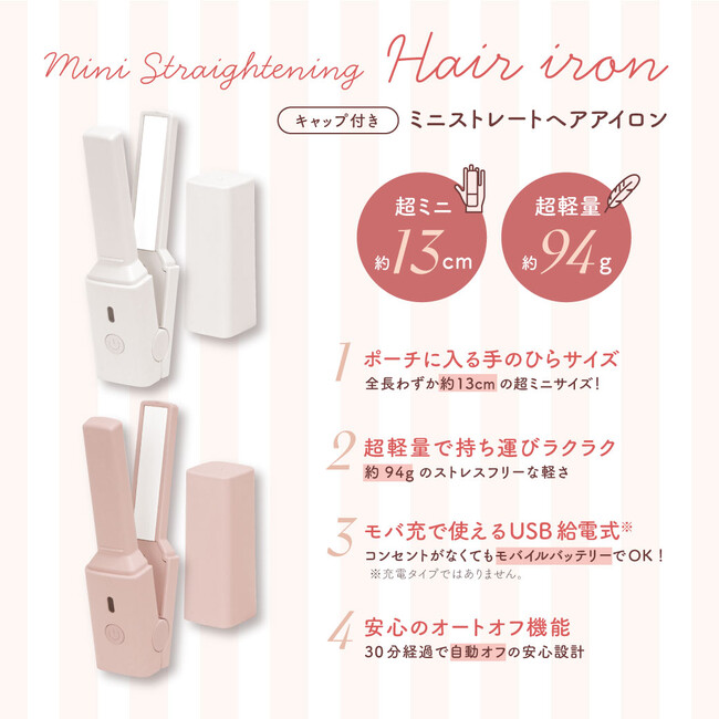 そしてこの度、より持ち運びに適したヘアアイロンとして「ミニストレートヘアアイロン」(1,170円(税込1,287円))を新発売します。