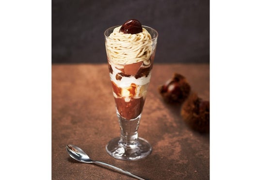 グラスの中で溶け合うおいしさ。熊本産の風味豊かな栗を使用したモンブランクリームとモロゾフのチョコレートムースを使った秋限定スペシャルパフェです。