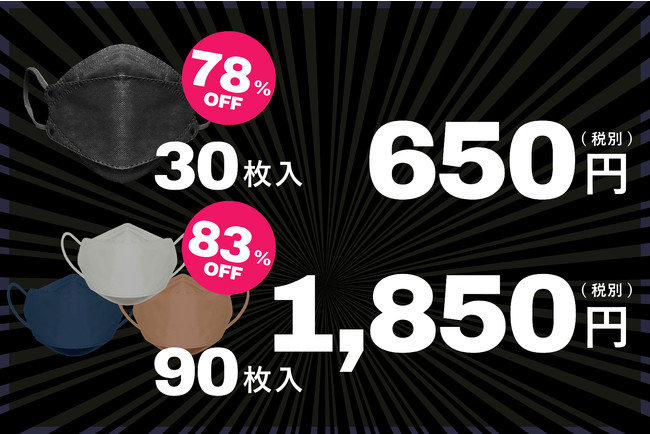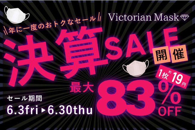 サムライワークス株式会社(代表取締役社長:新島 実 本社所在地:東京都渋谷区)は、累計販売数5,000万枚以上を突破している、肌にやさしく、息がしやすい、メイクが付きにくい、小顔に魅せる美しいフェイスラインで、最高の品質の毎日を笑顔にするマスク 「Victorian Mask(ヴィクトリアンマスク)」のMAX83%OFFおトクな期間限定決算セールを開催いたします。