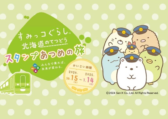 北海道鉄道活性化協議会は、北海道内の鉄道利用促進を目的としたキャンペーン「すみっコぐらし 北海道のてつどうスタンプあつめの旅」を2024年10月15日から2025年1月14日までの期間に実施します。