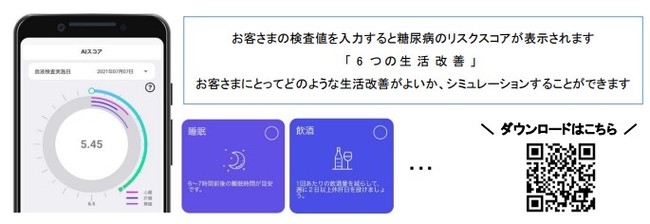 糖尿病AIアプリ「dAIbet」(ダイベット)は、お客さま自らが血液検査の数値を入力することで、MDVが診療データをもとに開発したAI(人工知能)により、糖尿病のリスクを算出し、予防に向けた生活改善策を提案します。どなたでも無料で利用することができ、糖尿病予防に積極的に取り組んでいただくきっかけとなることが期待されます。
