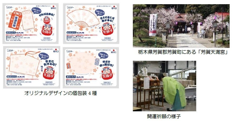 「芳賀天満宮」には学問の神様・菅原道真公が祀られており、とくに、合格達成や学業成就などにご利益があるとされています。1月や2月の寒い時期に実施される入学試験では受験生の多くがカイロを持参していることもあり、同製品は試験当日の“お守り”として頑張る受験生を応援します。