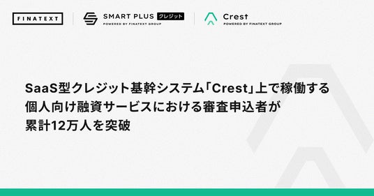 次世代金融インフラの提供を通して組込型金融を実現するFinatextグループの株式会社Finatext(本社:東京都千代田区、代表取締役CEO:木下 あかね、以下「Finatext」)と株式会社スマートプラスクレジット(本社:東京都千代田区、代表取締役:大澤 和明、以下「スマートプラスクレジット」)は、SaaS型クレジット基幹システム「Crest(クレスト)」上で稼働する個人向け融資サービスにおける審査申込者が累計12万人(2025年12月31日時点)を突破したことをお知らせします。