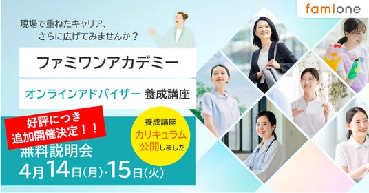 詳細を知りたい方や受講を検討される方に向けた無料説明会が好評につき、本日4月11日の15:00~15:30、19:00~19:30の開催に加え、4月14日(月)11:00~11:30、15日(火)13:15~13:45の追加開催が決定いたしました。