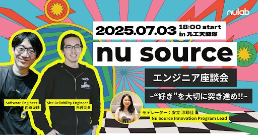 連携を記念し、エンジニア座談会「~“好き”を大切に突き進め!!~」を開催します。イベントでは、ヌーラボのエンジニア2名のパネルディスカッションや座談会の他、Nu Sourceの説明会も予定しています。