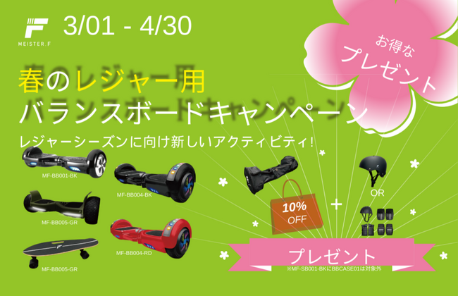 MEISTER.F導入店舗限定キャンペーンとして、重心移動させることで運転を操作する電動セルフバランススクーターシリーズを期間中、特別価格で販売します。