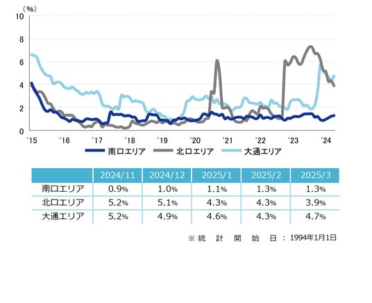 空室率 前月から小幅な低下 「大規模」は2024年9月以来の2%台