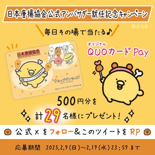 チキップダンサーズ「ほねチキン」の『日本唐揚協会 公式アンバサダー』就任を記念し、QUOカードPayが毎日その場で当たるキャンペーンを開催!