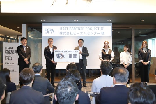 株式会社イトーキ(本社:東京都中央区、社長:湊 宏司)は2025年6月2日、イトーキパートナーサミットにて代理店向け表彰「BEST PARTNER AWARD 2024授賞式」を開催しました。「BEST PARTNER PROJECT賞」には、株式会社ビーエムセンターが受賞し、代表取締役社長・湊 宏司よりトロフィーと副賞が授与されました。