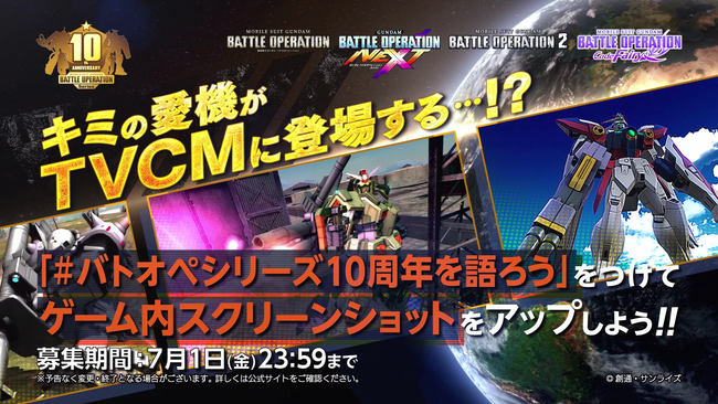 『機動戦士ガンダム バトルオペレーション』シリーズ10周年記念!キミの愛機がTVCMに登場する…!?キャンペーン!