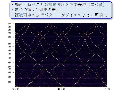 図2.光ファイバセンシング技術による列車走行軌跡の取得結果