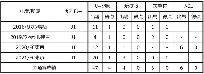 □出場記録(2021シーズン終了時点/国内クラブ所属時のみ)