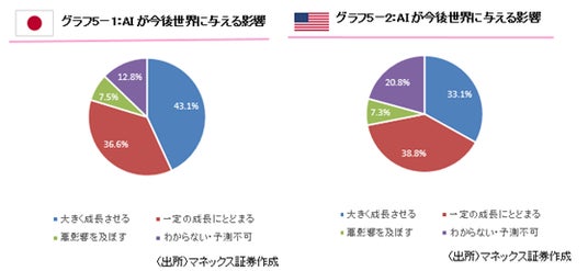2025年の日経平均株価の大幅な上昇局面においては、AI関連銘柄の影響が大きかったと考えられます。一方で、AI分野に対する期待が先行しており、一部では過熱感を指摘する声もあります。こうした状況を踏まえ、日本および米国の個人投資家に対し、AIが今後の世界経済にどのような影響をもたらすと考えているかについてたずねました。