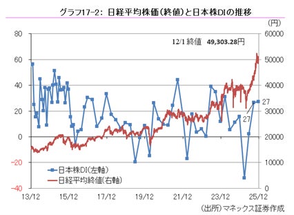 日本株DI:(2025年9月) 27→(2025年12月) 27(前回比 0ポイント)